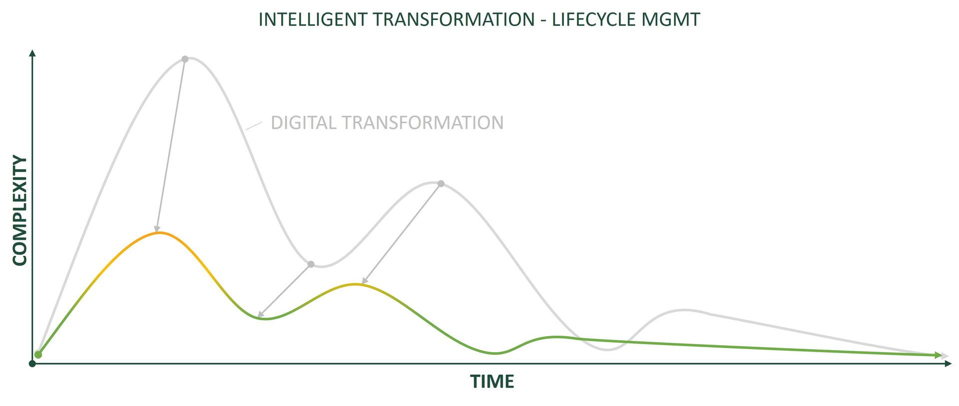 Intelligent Transformation flattens that curve. Safe tailorability eliminates the friction that creates the second bump. Constraints become compounding returns instead of fixed trade-offs.
