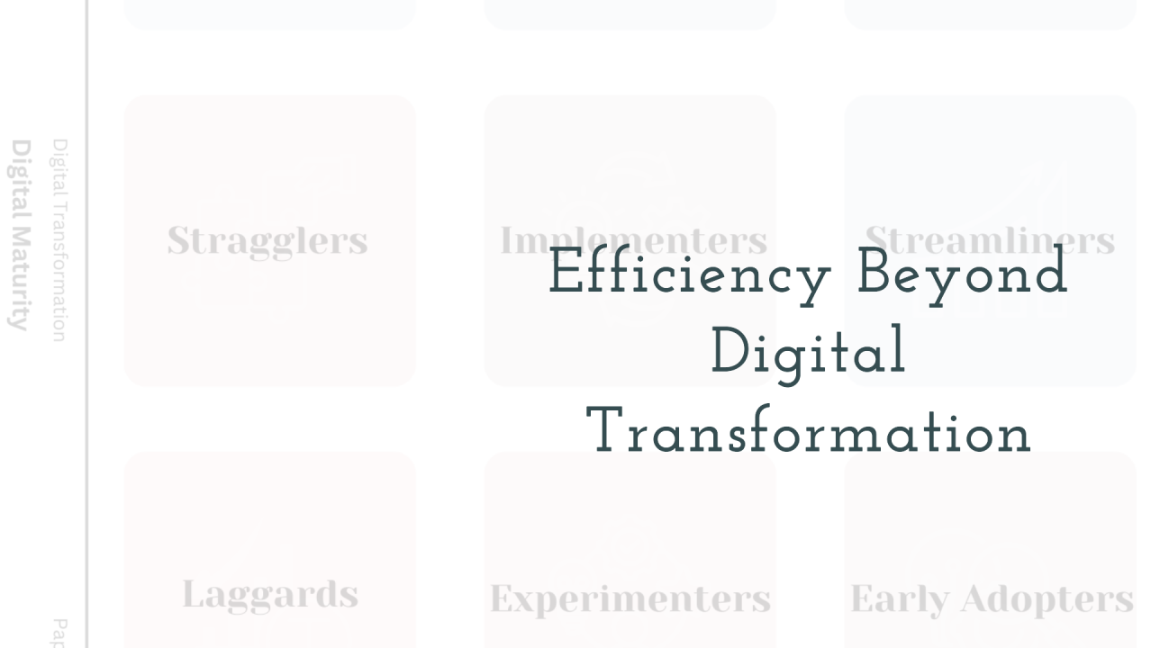 To understand where we stand and where we can go next on this journey, we introduce the Digital Efficiency Matrix. This 3x3 grid provides a comprehensive view of an organization's digital maturity and efficiency, guiding us toward the ultimate goal of becoming leaders in our respective industries.